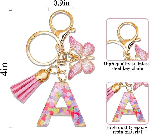 This keychain features a stunning butterfly and letter combination, offering a unique charm for personalization and aesthetic appeal.