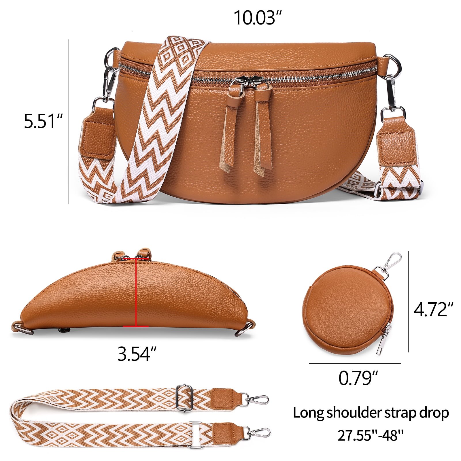 Weighs only 0.73 lbs. Comes with 1 adjustable and removable fashionable wide strap, can be used as a crossbody bag or shoulder bag.