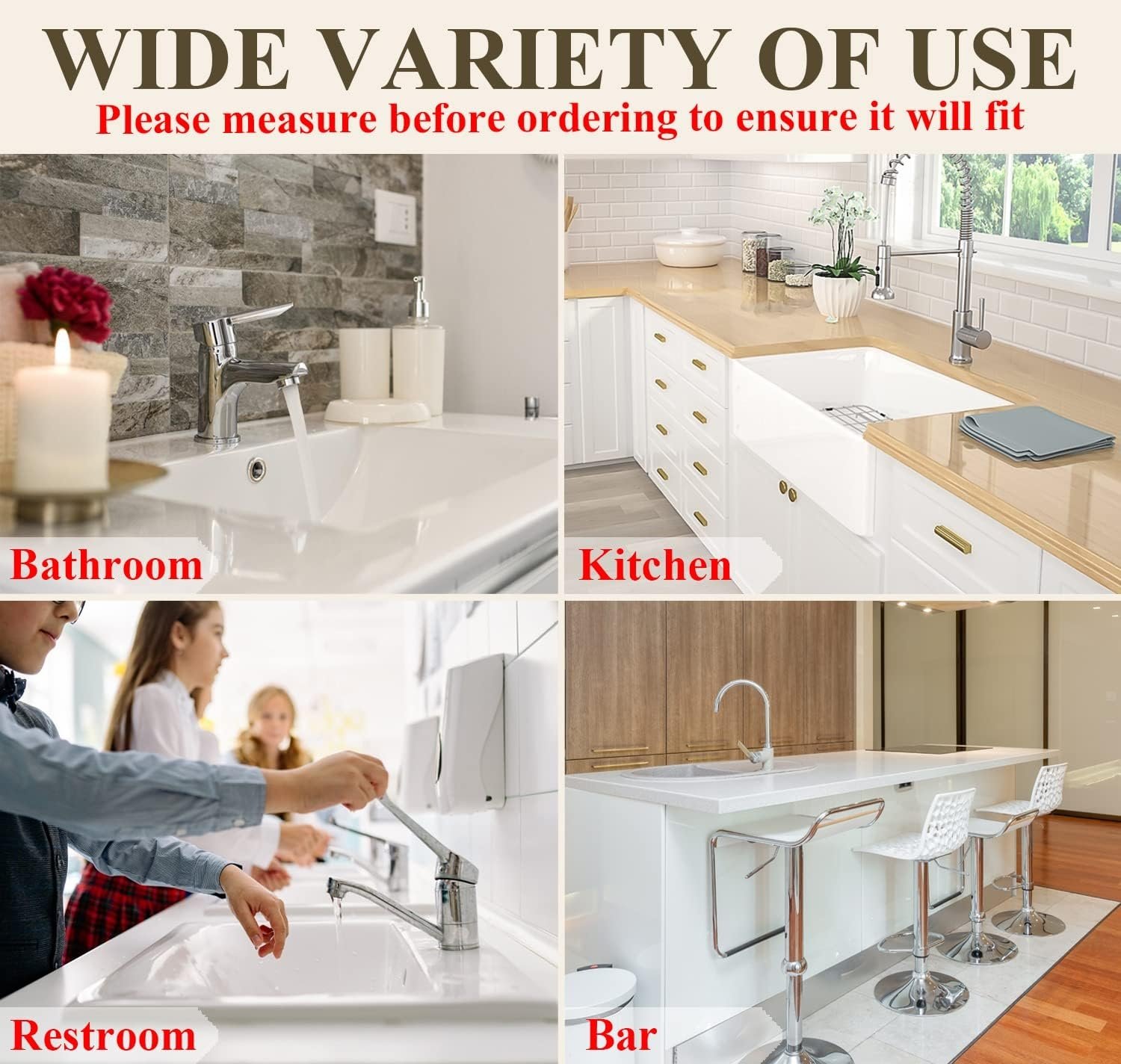 🔄Universal Fit: Trim it to fit most standard faucets. Versatile for kitchen, bath, laundry, sink, bar, and more.