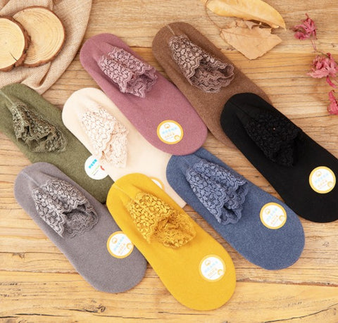 ❥Good Match For Most Occasions- The lace edge design is sweet and fashionable, and it is also fashionable in cold winter. The bottom of the socks has a non-slip design, so bare feet are not afraid of wrestling.