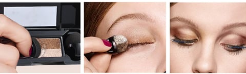 - Gently swipe the eyeshadow brush over the dual-color eyeshadow.
