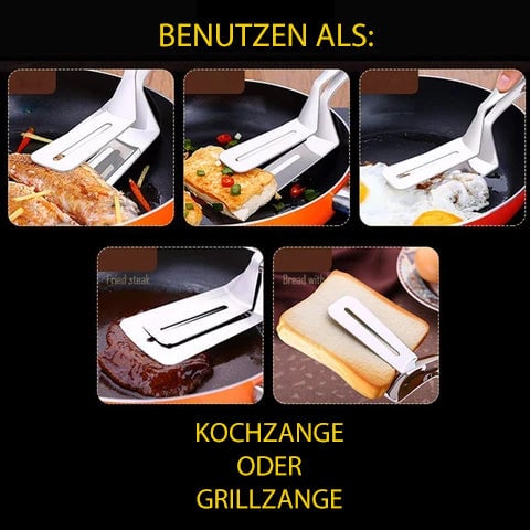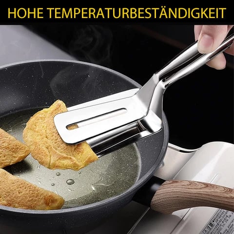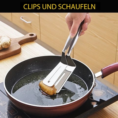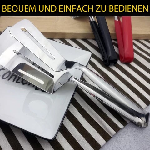 - ✅All in one design. It is not only a frying shovel but also a clamp/clip. It slices and scoops, sandwiches steaks and makes flipping easier. The special hollow design makes it easier for oil to escape and reduces excess oil. The wide-necked tongs are easy to grip, whether it's vegetables, a large steak or bread.