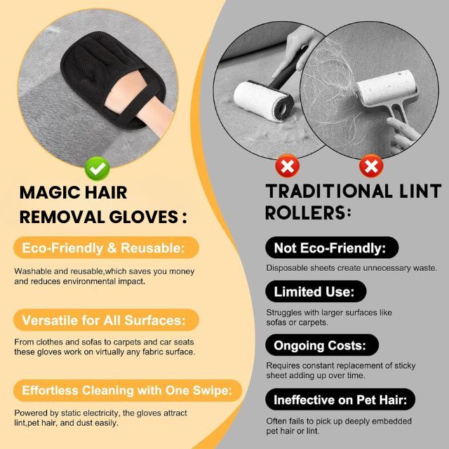 A: Yes, Unlike sticky rollers that constantly need refills or vacuums that miss tight spots, the Magic Hair Removal Glove uses an electrostatic grip to lift fur from any surface, effortlessly.