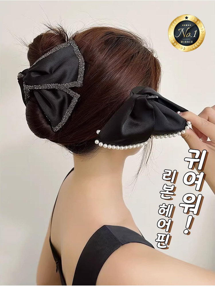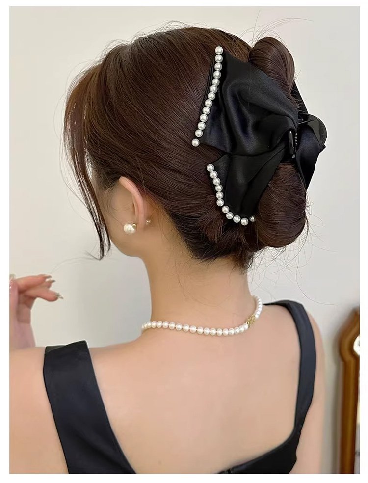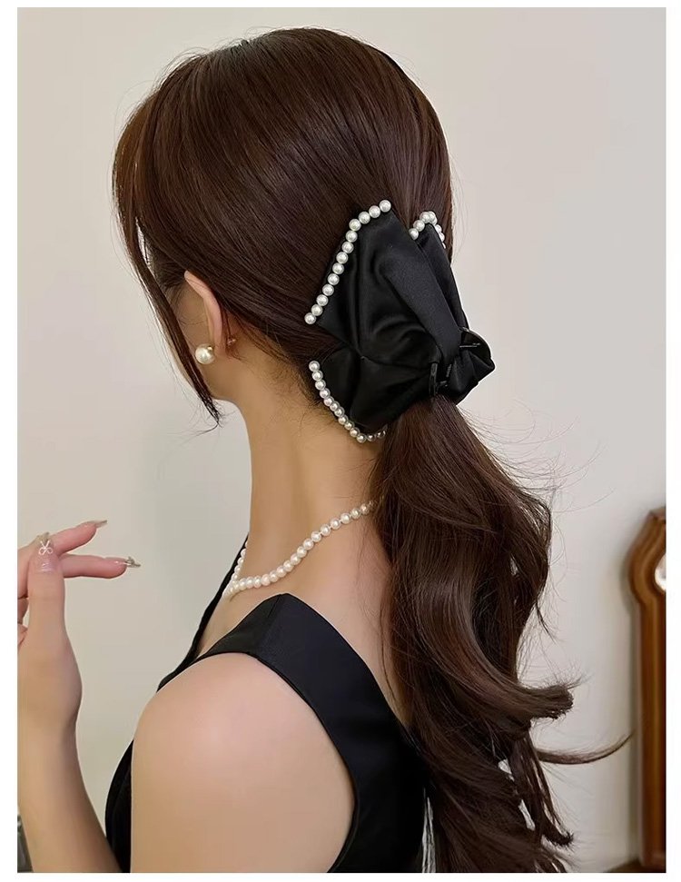 Women's Hepburn style glitter ribbon hair clip